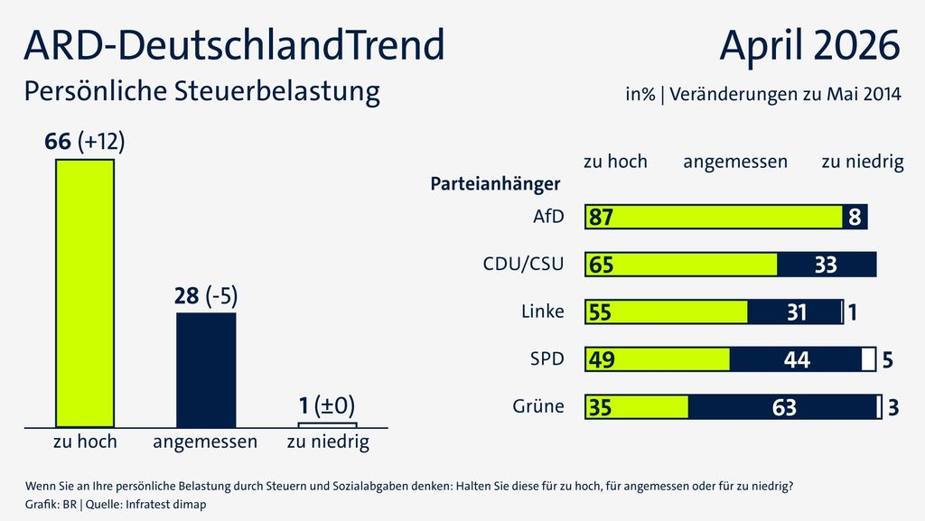 ARD-DeutschlandTrend im April 2026: Persönliche Steuerbelastung