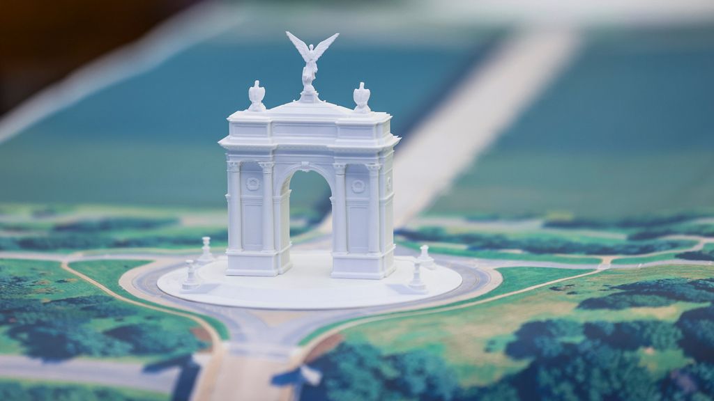 Prächtig und ganz in weiß: Modell von Trumps Triumphbogen